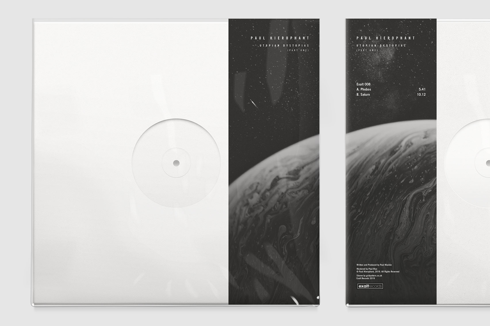 The final part of Utopian Dystopias, featuring full colour sleeve, coloured vinyl and insert. Paul had written a short story inspired by the themes explored on the trilogy that ended up on the insert, this was great inspiration for the artwork. Three planets feature on the cover and insert in reference to the trilogy of releases.