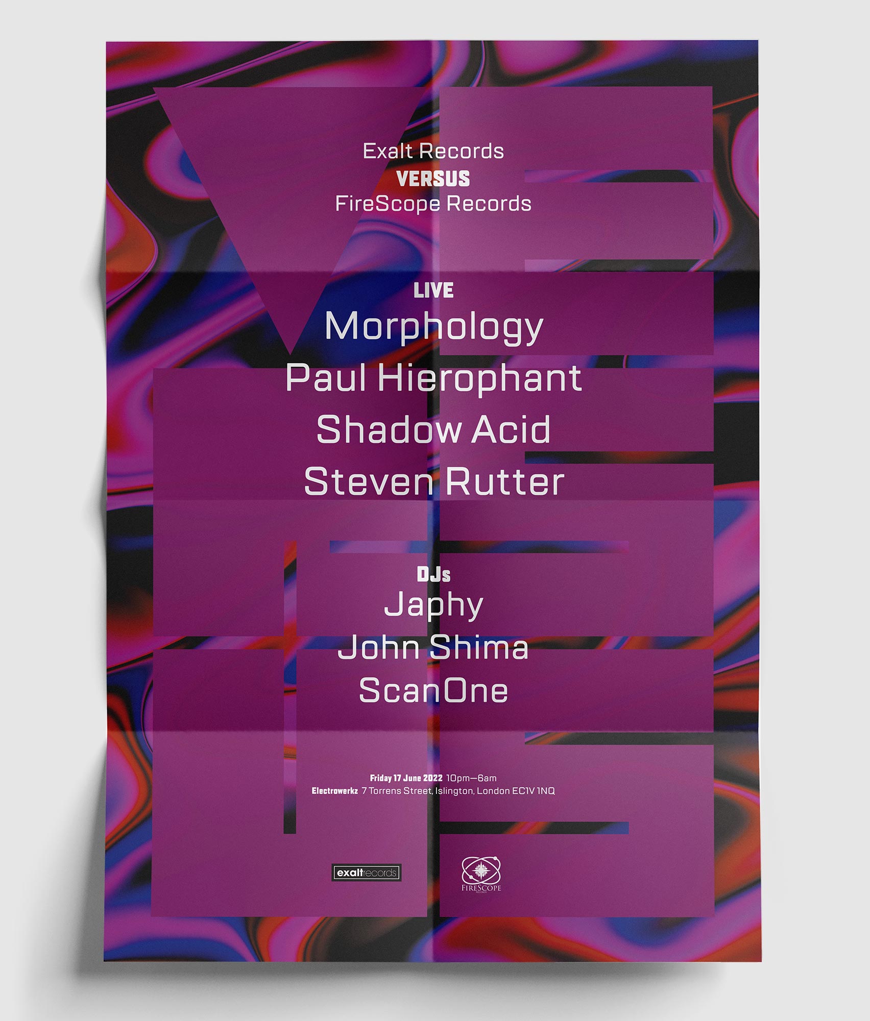 A live event jointly hosted by both record labels in London in June 2022. As well as social media promotional graphics, I also designed the labels for a limited edition set of three lathe cut 7"s (above) which were sold bundled with an A2 folded poster (below) at the event.